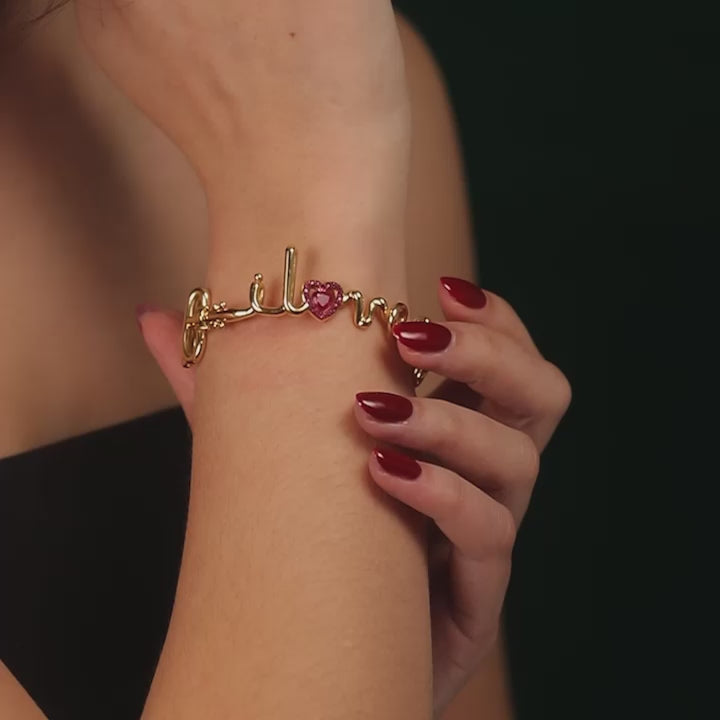 Also available in plain 18 karat yellow gold as a bespoke bracelet in the words of your choice. Please contact us for more information