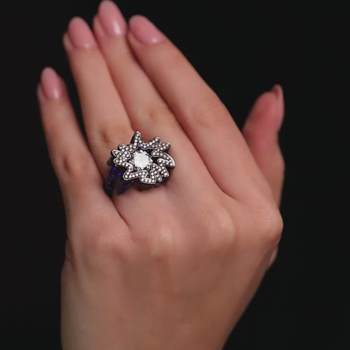Diamond and midnight blue lacquer ring in 18 karat gold